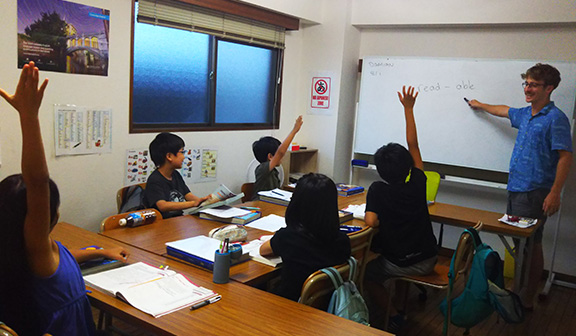 教室では先生方が生徒一人ひとりをよく理解し、丁寧に対応してくださるので、さまざまな学習に取り組んでおり、普段の授業(Reading/Writing)とは異なる視点から英語に触れることができ、とても満足しています。エジソンクラブでは、日本のカリキュラムに基づいた学習ができるため、日本を離れていたことへの不安が解消されています。